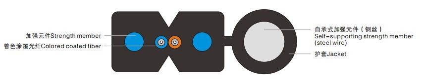 • 光纖置于兩根加強(qiáng)件中間,具有優(yōu)異的抗側(cè)壓和抗拉性能。