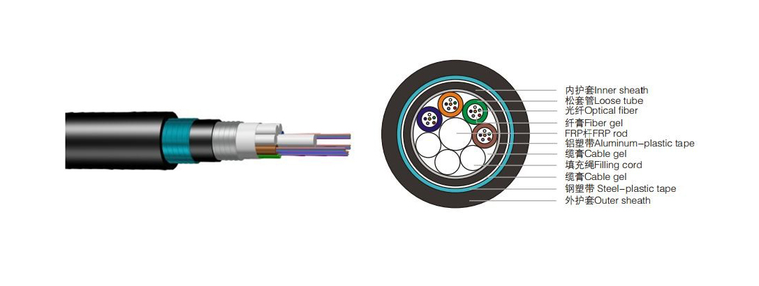 • 雙面覆膜皺紋鋼帶縱包,與PE護(hù)套緊密粘結(jié),既確保了光纜的徑向防潮,又增強(qiáng)了光纜耐側(cè)壓能力。