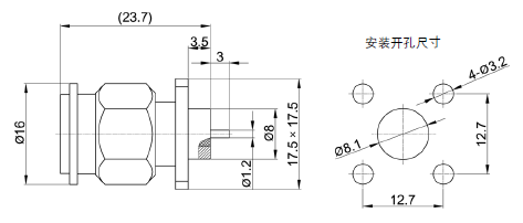 | 特性阻抗 | 50Ω | 內(nèi)導(dǎo)體 | 插針 | 黃銅 | 鍍金 | |