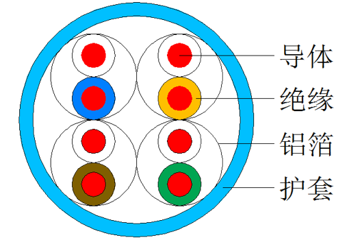 成纜:四對(duì)芯線(xiàn)對(duì)絞集合