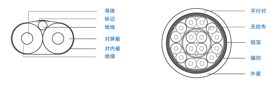 | 對屏蔽:鋁箔麥拉帶, 鋁面朝內(nèi),顏色 - 藍 | 外被 |