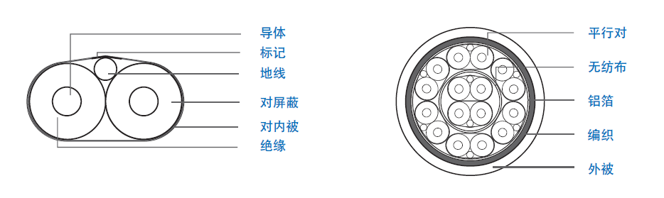 | 絕緣:0.41 mm of FPE, 外徑:1.17 mm, 顏色 - 本色 | 內(nèi)屏蔽:雙面鋁箔,重疊率 25% |